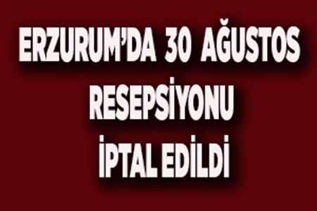 Erzurum’da 30 Agustos Zafer Bayrami dolayiyla Palandöken Kayak Merkezi’nde yapilmasi planlanan resepsiyon iptal edildi.Erzurum’da 30 Agustos Zafer Bayrami dolayiyla Palandöken Kayak Merkezi’nde yapilmasi planlanan resepsiyon iptal edildi. Erzurum Valiligi’nden yapilan açiklamada, “Son günlerde ülkemizde ve özelikle ilimizde meydana gelen terör olaylari ile sehitlerimize ve yüce milletimizin manevi degerlerine duydugumuz derin saygidan dolayi 30 Agustos 2015 Pazar günü Xanadu Snow White Otel’de düzenlenmesi planlanan “30 Agustos Zafer Bayrami” Resepsiyonu iptal edilmistir” denildi. Öte yandan, Erzurum Valiligi’nce yapilan ikinci bir açiklama ile Basbakanlik tarafindan çikarilan, 28.08.2015 tarihli ve 29459 sayi ile yayinlanan, 2015/6 genelgesi geregi, son günlerde meydana gelen terör olaylari nedeniyle 30 Agustos Zafer Bayrami törenlerinin sadece çelenk koyma ve tebrikleri kabul seklinde icra edilmesi; diger senlik, konser, eglence ve kutlama faaliyetlerinin yapilmamasinin uygun görüldügü belirtildi. 30 Agustos Zafer Bayrami kutlama etkinliklerinin sabah Atatürk Anitina çelenk sunumunun ardindan saygi durusu, Istiklâl Marsi’nin okunmasi ile göndere bayrak çekilecegi ve ardindan Valilik makaminda Vali Dr. Ahmet Altiparmak, 9. Kolordu ve Garnizon Komutani ve Büyüksehir Belediye Baskani olmak üzere protokol sirasina göre tebrikleri kabul edecekler.