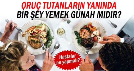 Ramazan'da oruç tutmak Müslümanlar için büyük önem tasir.Bu yüzden milyonlarca Müslümanlar onbir ayin sultani olarak bu ayi beklemektedir.Peki ya oruç tutmayanlar?Belli basli sebepleri olan ve oruç tutmayanlar, oruç tutanlarin yaninda bir sey yemesi günah midir?Hastane de hasta olarak yatanlar ne yapmali? Iste birçok sorunun cevabini haberimizden bulabilirsiniz.Sual: (Allah’in bildigi kuldan saklanmaz) diyerek açiktan oruç yiyenler oluyor. Günah degil midir? CEVAPGünahi, açik da, gizli de islemek caiz olmaz. Fakat nefsine, seytana uyarak günah isleyen, günahini gizlemelidir! Günahi gizlemek birkaç yönden faydalidir:1- Eger günahlarimiz açiga çikmamissa sevinmelidir! Cenab-i Hak, (Günahi gizleyin) buyuruyor. Peygamber efendimiz de sallallahü aleyhi ve sellem buyurdu ki: (Insan günahini dünyada gizlerse, Allahü teâlâ da, kiyamette, bu günahi kullarindan saklar.) [Müslim]2- Allahü teâlâ açiktan, çekinmeden günah isleyenlere daha çok bugzeder. Fakat üzülerek günahini gizleyenleri, gizledigi için affedebilir. Hadis-i serifte buyuruldu ki: (Bir günaha düsen, günahini gizlesin! Allahü teâlânin örtüsünü onun üzerinde bulundursun!) [Müslim]3- Günah islerken halktan olsun utanmalidir! Baskasini kendi hakkinda konusturmamak, giybetini ettirmemek için günahi gizlemelidir! Hadis-i seriflerde buyuruldu ki: (Haya tamamiyla hayirdir.) [Buhari] (Haya imandandir.) [Buhari] (Hayasizin dini olmaz ve hayasiz kisi Cennete giremez.) [Deylemi]4- Kötü örnek olmamak, baskalarinin da günah islemesine cesaret vermemek için günahi gizlemeli! Böyle sebeplerden dolayi açiktan günah islememeli, gizli de olsa günah islemekten sakinmali! Çünkü günahlar öldürücü zehirdir. Imani olan günah islemekten çok korkar. Hadis-i serifte buyuruldu ki: (Mümin, günahini dag gibi görür, üzerine düseceginden korkar. Münafik ise, günahini, burnuna konmus, hemen uçacak bir sinek gibi görür.) [Buhari]Islam Ahlaki kitabinda deniyor ki: Özrü yok iken, Ramazan günü asikâre yiyen, içen, mürted olur. (Feyziyye) Seadet-i Ebediyye kitabinda da söyle deniyor: Ramazan-i serifte umumi yerlerde, Müslümanlarin karsisinda, oruç yiyenlerin ve oruç tutanlari aldatarak, oruç tutturmayanlarin imani gider.Sual:Bu iki ifadeyi anlayamadik. Açiktan oruç yiyen kâfir mi oluyor? CEVAP Hayir büyük günah isleyene kâfir denmez. Burada, oruç emrini hafife almanin, farz oldugunu inkâr etmenin, oruç tutmamayi zimnen tesvik etmenin küfür oldugu bildiriliyor. Her farz böyledir. Mesela açik gezen bir kadin, kapanmanin Allah’in emri oldugunu biliyor, inaniyor ve begeniyorsa, çesitli sebeplerle kapanamiyorsa, buna kâfir denmez. Kapanmayi Allah’in emri kabul etmiyorsa veya kabul edip begenmiyorsa, açik gezdigi için hiç üzülmüyorsa, küfür olur.Açiktan oruç yemek Sual: Hastanede hasta olarak yatiyorum. Oruç tutacak durumum yok. Hastanede gizli yiyip içme imkânim da yok. Açiktan oruç yemek günah olur mu? CEVAP Hasta oldugunuz belli, yani oradakiler bunu biliyor ve görüyor, gizleme imkâni da yoksa açiktan yiyip içmek caiz olur.