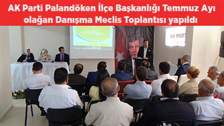AK Parti Palandöken Ilçe Baskanligi Temmuz Ayi olagan Danisma Meclis Toplantisi yapildi.AK Parti Palandöken Ilçe Baskanligi Temmuz Ayi olagan Danisma Meclis Toplantisi yapildi. AK Parti Palandöken Ilçe Baskanligi binasinda gerçeklestirilen toplantiya AK Parti Erzurum Milletvekili Adnan Yilmaz, AK Parti Il Baskani Fatih Yesilyurt, Palandöken Belediye Baskani Orhan Bulutlar, Palandöken Ilçe Baskani Haktan Ömeroglu, il ve ilçe yönetim kurulu üyeleri katildi. Divan Baskanligini Betül Karakus, katip üyelikleri ise Ömer Tanas ve Saniye Tokçe’nin yaptigi toplantinin açilis konusmasini yapan Palandöken Ilçe Baskani Haktan Ömeroglu, yasanan terör olaylarina tepki göstererek, “Biz büyük bir ülkeyiz. Birlik ve beraberlik içerisinde bu sikintili süreci de atlatacagiz” dedi. Palandöken Belediye Baskani Orhan Bulutlar ise yapilan teröre yönelik gerçeklestirilen operasyonlardan dolayi memnuniyet duyduklarini ifade ederek, AK Parti iktidarinin Türkiye’de çok önemli hizmetler gerçeklestirdigine dikkat çekerek, bu hizmetlerin devam etmesi gerektigini söyledi. Milletvekili Adnan Yilmaz ise birlik ve beraberlik içerisinde hareket etmeye devam edeceklerini belirtti. AK Parti Il Baskani Fatih Yesilyurt da yasanan terör olaylarini kinayarak, yasanan bu süreçten herkesin üzerine düsen dersi almasi gerektigini kaydetti. Toplanti daha sonra basina kapali olarak devam etti.