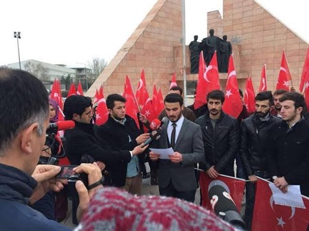 Ankara’da yasanan bombali saldiri sonrasi Atatürk Üniversitesi ögrencileri de teröre tepki gösterdi.Bir grup ögrenci ellerinde Türk bayraklariyla Atatürk Üniversitesi anitlar önünde toplanarak Istiklal Marsi okudu. Daha sonra grup adina Ögrenci ve Gençlik Dernegi ve AK Parti Erzurum Üniversite Birim Baskani Ömür Agirman, basin bildirisini okudu. Agirman okudugu bildiride terörü lanetledi, üniversite ögrencilerinin terör provokasyonlarina asla gelmeyecegini vurguladi. Okunan bildiride sunlar yer aldi; “Bu açiklamayi ülkenin vatansever gençleri adina gerçeklestiriyoruz. Ülkenin huzur Türkiye de huzur sükun ve kardeslik ikliminin hakim olmasindan rahatsiz olan otaklarca Ankara Kizilay’da gerçeklestirilen ve onlarca insanimizin ölümüyle sonuçlanan saldiriyi siddetle kiniyoruz. Sabrimizla oynamaniz nafiledir. Bilinmelidir ki sabrimiz kadar metanetimizde güçlüdür. Tahrik dolu hainliklere asla prim vermeyiz. Birlik ve beraberligimizi dayanismamizi artirmak için her türlü mücadeleyi verecegiz tüm arzularinizi kursaklarinizda birakacagiz. Iç ve dis mihraklarca ülkemizin birligi hedef aliniyor. Bu durumun farkindayiz. Güçlü Türkiye hedefi onlari rahatsiz etmistir. Provokasyon ve terör eylemlerinden nasiplenmeye çalisan mankutlara vatanini ve milletini seven bir üniversite gençligi olarak buna firsat vermeyecegimizi bildiririz. Sonuna kadar devletimizin bekasi için bedel ödeyip can sipare sekilde terörle mücadele eden, emniyetimizin hükümetimizin, devletimizin yanindayiz. Terörün ve teröre destek veren yardakçilarin ise karsisindayiz.”