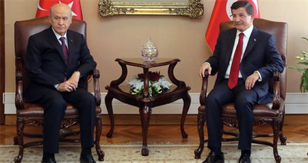 Basbakan Ahmet Davutoglu, MHP Genel Baskani Devlet Bahçeli ile saat 14.00'de bir araya gelecek.Basbakan Ahmet Davutoglu, yeni anayasa, TBMM Iç Tüzügü ve reformlari görüsmek üzere MHP Genel Baskani Devlet Bahçeli ile görüsecek. Davutoglu, 30 Aralik’ta CHP Genel Baskani Kemal Kiliçdaroglu ile 2 saat 15 dakika süren bir görüsme gerçeklestirmisti. Davutoglu ile Kiliçdaroglu, yeni anayasanin degistirilmesi konusunda mutabakata varmisti. Bugünkü görüsmede de yeni anayasa konusunda Basbakan Davutoglu, MHP Lideri Bahçeli’nin görüslerini alacak, izlenmesi gereken yol için görüs alisverisinde bulunacak. Davutoglu ile Bahçeli arasinda gerçeklestirilecek görüsmede, terör operasyonlari ve HDP Es Genel Baskanlarinin dokunulmazliklarinin kaldirilmasi konusunun da ele alinmasi bekleniyor. HDP Es Genel Baskanlarinin dokunulmazliklarinin kaldirilmasi konusunda Bahçeli’nin destek verecegi belirtiliyor. Görüsme, saat 14.00’de TBMM’de Bahçeli’nin makaminda olacak.