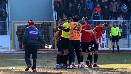 Taraftarlar sahaya ayakkabi ve çaydanlik firlatti, polis çikan olaylara biber gazi sikarak müdahale ettiSpor Toto 2. Lig Beyaz Grupta kendi evinde sampiyonluk yolunda oynayan BB. Erzurumspor, Kocaeli Birlikspor’a 1-0 maglup oldu. Kocaeli Birlikspor’un 75. dakikadaki golü sonrasi saha karisti. Taraftarlar sahaya ayakkabi ve çaydanlik firlatti, polis çikan olaylara biber gazi sikarak müdahale etti. Spor Toto 2. Lig Beyaz Grupta kendi evinde Kocaeli Birlikspor’u agirlayan BB. Erzurumspor’un, 75. dakikada yedigi gol sonrasi, rakip kalecinin oyunu yavaslatmaya yönelik hareketlerine kizan taraftarlar ellerindeki pet sise, buz ve çakmaklari kaleciye firlatti. Bu esnada maç, taraftarlarin firlattigi esyalar nedeniyle kisa süreli durdu. Daha sonrasinda rakip oyunculardan Emre Balak’in atilan buzu hakeme göstererek tepkide bulunmasi taraftarlari çilgina çevirdi. Tribünlerdeki BB. Erzurumspor taraftarlari ayakkabi, çaydanlik, çakmak, buz ve söktükleri koltuk parçalarini sahaya ve oyunculara firlatti. Sahaya giris kapisinin zorlanmasi üzerine çevik kuvvet ekipleri duruma müdahale ederek biber gazi sikti. Bazi taraftarlar ise kapiyi asarak sahadaki rakip oyunculara saldirmak istedi. Güvenlik görevlileri tarafindan saha disina atilan bazi taraftarlar, polise de tepki gösterdi. Taraftarlardan birisinin sahaya girmek istemesi üzerine 3. Sinif Emniyet Müdürü tarafta çelme takarak yere düsürdü. Atilan esyalardan korunmak isteyen saha kenarindaki görevli ve polisler de zor anlar yasadi. Yasanan olaylarda 3 kisi yaralanirken, bazi taraftarlar da gözaltina alindi. Öte yandan, maçin 90 dakikasi BB. Erzurumspor’un 1-0’lik maglubiyetiyle sona erdi.