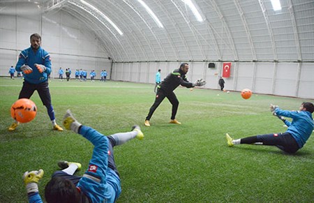 Spor Toto 3. Lig 1. Grupta 23’ncü hafta kendi evinde konuk edecegi Tekirdagspor maçi hazirliklarini sürdüren mavi-beyazli ekip, çalismalarini hali sahada sürdürüyor.ÇALISMALAR HALI SAHADA Dondurucu soguklarin etkili oldugu Erzurum’da BB Erzurumspor, Pazar günü konuk edecek Tekirdagspor maçi hazirliklarini Hali sahada sürdürüyor. Teknik Direktör Ahmet Yildirim, Yardimci Antrenörler Bülent Üstüner, Sinan Demircioglu, Zafer Demiray ve kaleci antrenörü Emin Sari’nin yönetiminde günde çift kale antrenman yaparak hazirlanan mavi-beyazli takimin çift kale ve sut çalismasinda futbolcularin azimli ve performansli olduklari dikkat çekti. ‘BIZIM IÇIN HER MAÇ ÇOK ÖNEMLI’ BB Erzurumspor Teknik Direktörü Ahmet Yildirim, her maçi kazanma arzusu içinde olduklarini ve her maçin kritik olduguna vurgu yapti. Teknik Direktör Yildirim,”Havalarin sogumasi ile aldigimiz karar üzerine futbolcularimiz daha saglikli antrenman yapmalarini saglamak için Tekirdagspor maçi hazirliklarini hali sahada yaparak hazirlaniyoruz. Tek düsüncemiz taraftarlarimizin destegi ile üç puanli maçtan galibiyetle ayrilmak. Centilmence iyi oynayarak üç puaninin bizim olmasi parolasiyla sahaya çikacagiz. Büyük bir camiayi, taraftarimizi arkamizda hissediyoruz. Inaniyorum ki her antrenmanda basarilarini ortaya koyan futbolcularim Tekirdagspor maçinda basarilarini sahaya yansitacaklar.” diye konustu.