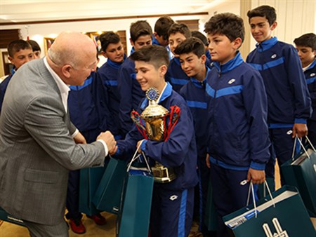 Büyüksehir Belediye Erzurumspor’un sampiyon altyapisi U-13 ekibi, Büyüksehir Belediye Erzurumspor’un Onursal Baskani Mehmet Sekmen’i ziyaret etti.Yerel ligde sampiyon olan Mavi Beyazlilar, kupayi Baskan Sekmen’e takdim etti. Erzurumspor’un Yönetim Kurulu Üyesi ve ayni zamanda Altyapi Sorumlusu olan Taner Tugay, teknik heyet ve genç futbolculari tek tek tebrik eden Baskan Sekmen, “Büyüksehir Belediye Erzurumspor’un elde ettigi sampiyonluk sonrasi U-13’ün de kazandigi bu sampiyonluk bizleri çok mutlu etti. Altyapi, spor kulüplerinin can damari gibidir. Bizler de sportif yasantimizda suan dört büyüklerde top kosturan birçok sporcuyu altyapida kesfederek Türk sporuna kazandirdik. Insallah U-13’ten de Süper Lig’de oynamak için nice sporcular yetisecektir. Altyapiya çok önem veriyoruz. Insallah bu emeklerin meyvesini Erzurumspor fazlasiyla alacaktir. Bu vesileyle aslan yürekli sampiyon çocuklarimizi, teknik heyetimizi ve Taner Tugay kardesimizi yürekten kutluyorum. Insallah altyapidan daha büyük basarilar elde edecegiz ve Türk futboluna yeni yildizlar kazandiracagiz” dedi.
