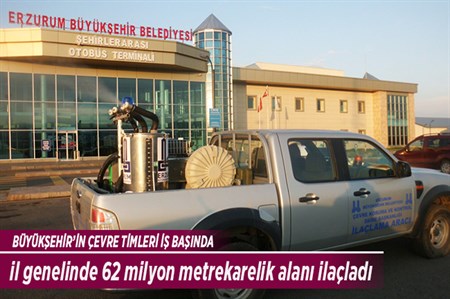 Erzurum Büyüksehir Belediyesi, hava sicakliklarinin artmasiyla birlikte sivrisinek, karasinek, kene ve diger haserelerle mücadele için ilaçlama çalismalarini artirdi.Erzurum Büyüksehir Belediyesi, hava sicakliklarinin artmasiyla birlikte sivrisinek, karasinek, kene ve diger haserelerle mücadele için ilaçlama çalismalarini artirdi. Büyüksehir Belediyesi Çevre Koruma ve Kontrol Daire Baskanligi Veteriner Isleri Sube Müdürlügü, asiri sicaklarla birlikte artan sivrisinek, karasinek, kene ve diger haserelere karsi ilaçlama çalismalarini yogunlastirdi. Agirlikli olarak merkez ilçeler ve mahallelerde ilaçlama çalismasi yapan ekipler, vatandaslarin talepleri dogrultusunda gece gündüz demeden ilaçlama yapiyor. Özellikle vatandaslarin yogun olarak bulundugu alanlar, tarim ve hayvancilik bölgeleri, bataklik ve sulak alanlarda biyosidal mücadele gerçeklestiren ekipler, insan yasamini etkileyen alanlari dezenfekte ediyor. Yetkililer, ilaçlama çalismalarinin agustos ve eylül aylarinda da devam edecegini bildirdi. 62 MILYON METREKARELIK ALAN ILAÇLANDI Büyüksehir’in Çevre Timleri, il genelinde 62 milyon metrekarelik alani ilaçladi. Çevre Koruma ve Kontrol Daire Baskanligi ekipleri, hasereyle mücadele çalismasini mayis ayinda baslatti. Üç aydir süren ilaçlama çalismasinda il genelinde toplam 62 bin dönümlük (62 milyon metrekare) alan dezenfekte edildi. Cami, mescid, adli, idari ve askeri alanlar gibi çok sayida kamu kurum ve kuruluslarda ilaçlama yapan Çevre Timleri, temmuz ayi sonunda toplam 6 bin 745 metrekarelik kapali alani da ilaçladi. Saglik Bakanligi tarafindan onaylanmis ilaçlarin kullandigi hasereyle mücadele çalismasi eylül ayi sonuna kadar devam edecek.