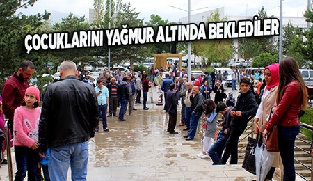 Erzurum’da Lisans Yerlestirme Sinavi (LYS)-4 Sosyal Bilimler sinavina giren adaylar sinavda ter dökerken, aileleri de çocuklarini saganak yagmur altinda bekledi.Erzurum’da sabah saatlerinden itibaren sinavlarin yapilacagi merkezlere giden adaylar, giris kapilarinda yapilan polis aramasinin ardindan içeriye alindi. Çocuklariyla birlikte sinav merkezlerine gelen aileler de çocuklari içeride ter dökerken disaridaki saganak yagmurda beklediler. Kimi aileler endise içinde beklerken bazilarinin rahat tavirlari dikkat çekti. Saganak yagmurun etkisini artirmasiyla disarida bekleyen ailelerden bazilari önceden getirdikleri semsiyelerle önlem alirken, bazilari da agaç ve binalarin saçak altlarinda çocuklarinin sinavdan çikmasini beklediler. Yagmurdan korunmak için farkli yöntemlere basvuranlar dikkat çekti. Bir otomobilin bagaj kapagini açarak altinda yagmurdan korunan veliler ilginç görüntüler olusturdu. 12:30’dan itibaren sinav salonlarindan çikan ögrencilerin büyük çogunlugu sinavin kolay geçtigini belirttiler.