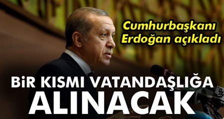 Cumhurbaskani Erdogan Sanliurfa’da kanaat önderleriyle bir araya geldi. Erdogan, Türkiye’deki bazi mültecilerin vatandasliga alinacagini açikladi.Içisleri Bakanliginin kamplardaki Suriyeli ve Iraklilara iliskin bir çalisma yürüttügünü dile getiren Erdogan, “Bunlarin bir kismini bütün incelemeler yapildiktan sonra vatandasligimiza da alacagiz” dedi.Cumhurbaskani Recep Tayyip Erdogan, Sanliurfa’da kanaat önderleri ve sivil toplu kurulusu temsilcileriyle aksam yemeginde bir araya geldi.Cumhurbaskani Erdogan yaptigi konusmada, Türkiye’nin 14 yilda geldigi noktaya dikkat çekerek, “Su havalimani, su yollara bak. Nereden nereye geldik. Var miydi bunlar yoktu. Buralara kolay mi geldik? Bunlar ufku olan yöneticilerin liderlerin isi. Biz gelecege öyle baktik. Tarihte de biz yaptik. Buralar ilim merkeziydi. Tarimin merkezi burasiydi. Haran’di. Dünya buradan kalkti. Biz bunu geriye döndürmeliyiz. Tarim bakani iste burada. Yeniden derleyip, toparlayacagiz. Yigit düstügü yerden kalkiyor. Bu ülkenin her bir karisinda, heybesinde sadece ilim olan, ask olan gönül erlerinin emegi vardir. Tarla arazi, imar girmemis topraklardir. Imar girene arsa diyoruz. Vatan sehit kanlari ile yogrulmus topraga denir. Biz sehit kanlari ile burayi vatan yaptik. Operasyon yapmayi düsünenler avuçlarini yalarlar. Canimiz yaniyor üzülüyoruz. Allah’in vaadi ortada üzülmeyin. Biz buradan bakacagiz olaya. Terazisi uygun olmayanlar bunu anlamaz. Uygun olanlar Bekir hoca, Asli kardesim gibi anlar. Mesele bunu yakalamamiz” dedi.