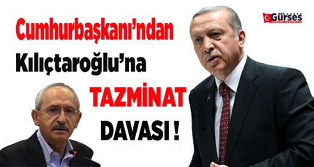 Cumhurbaskani Recep Tayyip Erdogan, CHP Genel Baskani Kemal Kiliçdaroglu'na TBMM'de 17 Mayis'ta gerçeklesen partisinin grup toplantisinda yaptigi konusmada kullandigi ifadelerden dolayi 100 bin liralik manevi tazminat davasi açti.Cumhurbaskani Erdogan’in avukatlari Hüseyin Aydin ve Tugba Saglam Eker tarafindan dava dilekçesi Ankara Asliye Hukuk Mahkemesi’ne verildi. Dilekçede Kiliçdaroglu’nun, grup toplantisindaki konusmasinda Cumhurbaskani Erdogan’in ‘sahsiyet haklarina saldiri kastiyla fevkalade agir harekette bulundugu’ kaydedildi. Davalinin ifadelerinde elestiri ve ifade özgürlügü sinirlarini astigi vurgulanarak kullandigi ifadeler nedeniyle 100 bin lira manevi tazminatla cezalandirilmasi talebinde bulunuldu.