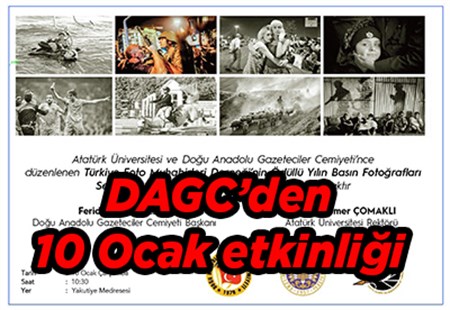 Dogu Anadolu Gazeteciler Cemiyeti ve Atatürk Üniversitesi’nce düzenlenen Türkiye Foto Muhabirleri Dernegi Ödüllü Basin Fotograflari Sergisi 10 Ocak Çarsamba günü Erzurum’da açilacak.Türkiye Foto Muhabirleri Dernegi’nin ödüllü yilin basin fotograflari sergisi yarin (10 Ocak Çarsamba) Erzurum’da açiliyor. Dogu Anadolu Gazeteciler Cemiyeti, Atatürk Üniversitesi Rektörlügü ve Türkiye Foto Muhabirleri Dernegi’nin isbirligi ile açilacak sergide geçtigimiz yila damgasini vuran Yilin Basin Fotograflari Yarismasi’nda ödül kazanan fotograflar sergilenecek. 10 Ocak Çalisan Gazeteciler Günü saat 10.30’da Yakutiye Medresesi’nde açilacak. Sergi Cuma gününe kadar açik kalacak. DAGC Baskani Özsoy, Çalisan Gazeteciler Günü’nü bu etkinlikle kutlayacaklarini ifade etti. Özsoy, Türkiye Foto Muhabirleri Dernegi’nin Yilin Basin Fotograflari Sergisi’nin tarihe taniklik eden fotograflardan olustugunu belirterek, herkesi sergiyi gezmeye davet etti.