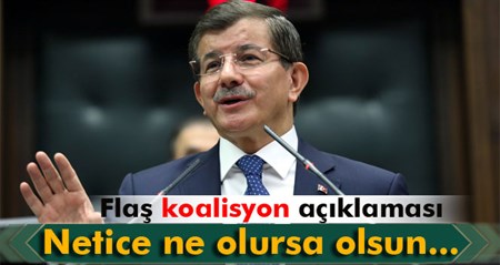 'Basbakan Ahmet Davutoglu, koalisyon senaryolariyla ilgili olarak, ‘Netice ne olursa olsun insallah güçlü bir hükümet kurmak nasip olur. Nihai karar milletindir ve milletin olacaktir’ dedi.Basbakan Ahmet Davutoglu, AK Parti Ankara il teskilatinin iftar programinda konustu.Davutoglu, “Son 3 gün içinde liderlerle görüsmeler gerçeklestirdik. Netice ne olursa olsun insallah güçlü bir hükümet kurmak nasip olur. Ama kuramazsak ve seçim mukadder olursa netice ne olursa olsun aziz milletimizin müsterih olmasini ve gelecege ümitle bakmasini istirham ediyorum. Türkiye’de bütün bir milleti kucaklayan, 78 milyonu kucaklayan bir hükümet vardir. 78 milyonun sözcülügünü yapan Ak Parti kadrolari vardir ve duruma hakimdir. Buradan bütün parti liderlerine sesleniyorum, önümüzdeki Ramazan Bayrami’ni konustuklarimiz çerçevesinde istisare etmesini temenni ediyorum” dedi.