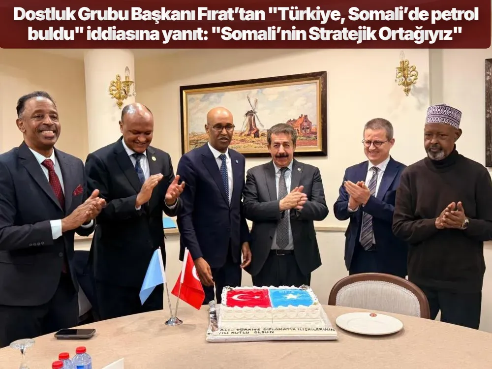 TBMM Türkiye-Somali Parlamentolar Arası Dostluk Grubu Başkanı Abdurrahim Fırat, Somalili bir iş insanının "Türkiye’nin Somali’de petrol bulduğu ve bu yüzden bölgeye 3 F-16 ve 3 savaş helikopteri gönderdiği" yönündeki değerlendirmesine, iki ülkenin stratejik ortak olduğu vurgusuyla yanıt verdi.