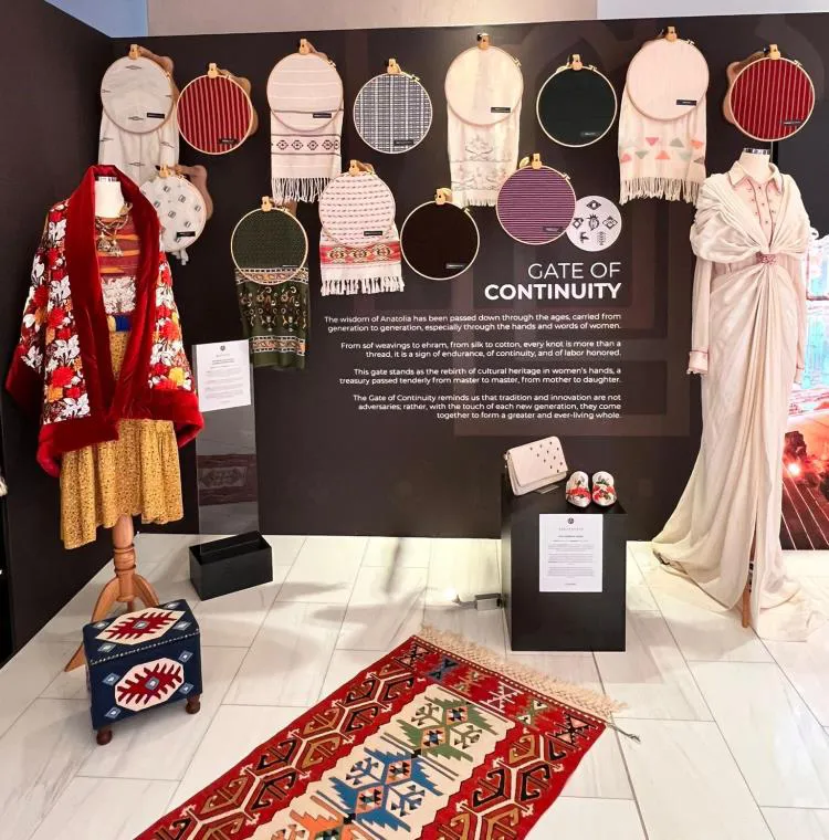 Sergide; 40’a yakın geleneksel kumaş, el yapımı kilimler, telkari ve kazaziye takılar, çini örnekleri, ceviz sandıklar ve el dövmesi bakır kaplar gibi Anadolu’nun zengin kültürel mirasını yansıtan çok sayıda eser yer aldı. Ziyaretçiler, "Döngü", "Süreklilik", "Dayanışma" ve "Ustalık" temalarıyla kurgulanan dört ayrı kapıdan geçerek Anadolu’nun üretim kültürünün geçmişten bugüne uzanan hikâyesine tanıklık etti.