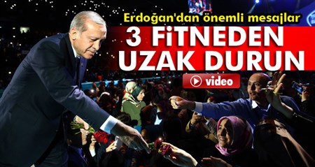 Cumhurbaskani Erdogan, 3 fitneden uzak durulmasi gerektigini, bu fitnelerin terör, irkçilik ve mezhepçilik oldugunu ifade etti.