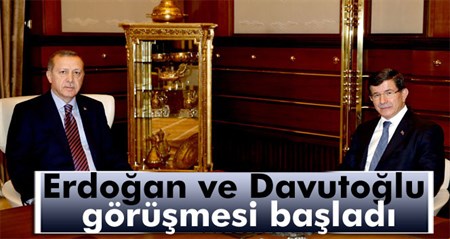 Cumhurbaskani Recep Tayyip Erdogan'in, Basbakan Ahmet Davutoglu'nu kabulü basladi.Cumhurbaskanligi Külliyesi’nde basina kapali olarak saat 19.55’te baslayan kabulde, Basbakan Ahmet Davutoglu’nun hükümeti kurma görevini Cumhurbaskani Erdogan’a iade etmesi bekleniyor.