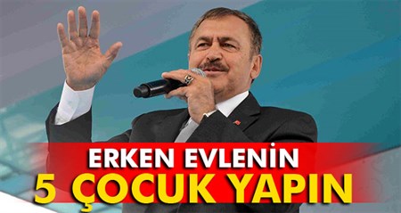 Orman ve Su Isleri Bakani Veysel Eroglu, bakanliginin aday memurlarina, “Erken yatip erken kalkin ve erken evlenin. Hem erken evlenin hem de en az 5 çocuk yapin, bunu kendinize hedef olarak koyun” dedi.Orman ve Su Isleri Bakani Veysel Eroglu, bakanliginin aday memurlarina, “Erken yatip erken kalkin ve erken evlenin. Hem erken evlenin hem de en az 5 çocuk yapin, bunu kendinize hedef olarak koyun” dedi. Orman ve Su Isleri Bakanligi tarafindan 2015 yilinda alinan aday memurlarin intibak egitimleri Kizilagaç Turizm Bölgesinde Silence Beach otelde basladi. 22 Nisan 2016 tarihine kadar sürecek egitimde mühendisten orman muhafaza memuruna, hizmetli ve müfettis yardimcilarina kadar, çesitli unvanlarda 731 aday memuru egitim görecek.Programin açilisinda, Orman ve Su Isleri Bakanligi Müstesar Yardimcisi Ibrahim Çiftçi aday memurlara hitap ederek görevleri sürecinde neler yapmalari gerektigi konusunda tavsiyelerde bulundu. Aday memurlardan erken yatip erken kalkmayi kendilerine hayat felsefesi olarak kabul etmeleri gerektigini belirten Çiftçi, “Her biriniz gencecik insanlarsiniz. Bir büyügünüz olarak eger bu kurumda basarili olmak istiyorsaniz erken evlenin” dedi.12-22 Nisan tarihleri arasinda gerçeklesecek programin açilisina katilan Orman ve Su Isleri Bakani Veysel Eroglu da aday memurlara nasihatlerde bulundu.Orman ve Su Isleri Bakani Veysel Eroglu, bakanligi bünyesinde görev alacak yeni çalisma arkadaslari, taze kuvvetlerle kucaklasmak amaciyla toplantiya katildigini belirterek, “Öncelikle sizlere sunu söylemek istiyorum. Ben müstesar yardimcimiz Ibrahim Çiftçi’nin erken yatip kalkin ve erken evlenin sözlerine bir eklemede bulunmak istiyorum. Hem erken evlenin hem de en az 5 çocuk yapin. Bunu hedef olarak koyun” dedi. Bir insanin ilk önemli hedefinin iyi bir egitim almak, ikincisinin is güç sahibi olmak oldugunu belirten Bakan Eroglu, üçüncü hedefinin de saglikli bir yuva kurarak aileleriyle mutlu bir ömür geçirmek oldugunu sözlerine ekledi.“ORMAN VE SU ISLERI BAKANLIGINDA ÇALISMAK AYRICALIKTIR” Orman ve Su Isleri Bakanliginda çalismanin bir ayricalik olduguna dikkat çeken Bakan Eroglu, “Sizler göreviniz geregi agaç dikip, insanlara içmek ve ihtiyaçlarini gidermek için su getirirken önemli bir hayir isini de yapmis oluyorsunuz. Böylelikle insan basta olmak üzere bütün canlilara hizmet etmis oluyorsunuz. Insanlarin dualarini aliyorsunuz. Sizler iste böylesine güzel ve anlamli bir görevi üstleniyorsunuz. Bunun kiymetini bilin” dedi. Bakanliginin Türkiye’nin en büyük yatirimci bakanligi oldugunu dikkat çeken Bakan Eroglu, Devlet Su Isleri’nin (DSI) Türkiye’nin su problemini çözmenin yaninda Afrika’da 1 milyon 700 bin susuz insana su götürdügünü, son olarak ta KKTC’ye hem içme hem de sulama suyu götürmek için çalisma baslattiklarini kaydetti.“EN FAZLA FIDAN DIKEN 3. ÜLKEYIZ” Orman teskilatinin Türkiye’nin en köklü kurumlari arasinda yer aldigina vurgu yapan Bakan Eroglu, bugüne kadar yaklasik 3,5 milyon fidanin toprakla bulusturuldugunu, Çin ve Hindistan’in ardindan dünyada en fazla fidan dikimini gerçeklestiren ülke olduklarina degindi.BAKANDAN MEMURLARA TAVSIYE Doga Koruma ve Milli Parklar Genel Müdürlügü ile Meteoroloji Genel Müdürlügünün yapmis oldugu çalismalardan örnekler veren Bakan Eroglu, aday memurlara; plan ve program yaparak zamani en iyi sekilde degerlendirmeleri, islerini isteyerek ve severek yapmalari, gerek çalisma arkadaslarina gerekse vatandasa karsi güler yüzlü olmalari, nezaketi hiçbir zaman elden birakmamalari ve en önemlisi de insanlari dinlemeleri ve giybet etmemeleri yönünde tavsiyelerde bulundu.