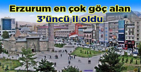 Erzurum Dogu Anadolu Bölgesi illeri içinde en fazla göç alan 3’üncü il oldu.TÜIK Illerin aldigi, verdigi göç, net göç ve net göç hizi, 1980-2016 verilerine göre 762 bin 21 kisilik nüfusu olan Erzurum geçilen yil 26 bin 957 kisilik göç aldi. TÜIK verileri TÜIK Nüfus verilerine göre 2016 yilinda 36 bin 340 kisilik göç veren Erzurum, ayni dönemde 26 bin 957 kisilik göç aldi. Ilin net göç hizi binde -12.2 oldu. Il Dogu Anadolu Bölgesinde en fazla sayida göç alan 3’üncü il olurken, alinan göçün toplam nüfus içindeki orani yüzde 3.53 olarak hesaplandi. Erzurum alinan göçün toplam nüfus içindeki orani yüksekligi bakimindan ise Malatya’yi takip etti. Dogu Anadolu Bölgesinde aldigi göç sayisi bakimindan ilk sirayi Van, en son sirayi ise Tunceli aldi. TÜIK verileri üzerinden yapilan hesaplamalara göre, Bölgede alinan göç sayisina göre iller siralamasi, Van, Malatya, Erzurum, Elazig, Agri, Erzincan, Bitlis, Mus, Bingöl, Kars, Igdir, Hakkari, Ardahan ve Tunceli seklinde olustu.