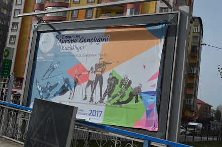 11-18 Subat 2017 tarihlerinde yapilacak olan Avrupa Gençlik Kis Spor Oyunlari(EYOF) öncesinde sehirde süsleme çalismalari start aldi. Tanitim afisleri Büyüksehir Belediyesi Bilboardlarinda dönmeye basladi.Erzurum artik EYOF moduna giriyor. 11-18 Subat 2017 tarihlerinde Erzurum’da yapilacak olan Avrupa Gençlik Kis Spor Oyunlari Festivali (EYOF) için hazirliklar tüm hiziyla sürerken, sehirde süsleme çalismalari da basladi. 36 ülkeden 2 bin dolayinda sporcu, antrenör ve idarecinin katilacagi Avrupa Gençlik Kis Spor Oyunlari tanitim afisleri de Büyüksehir Belediyesi’ne ait bilboardlara dönmeye basladi. Bilboardlara asilan tanitim afisleri Erzurum halkinin ilgisini çekmeye basladi. 2017 EYOF Genel Koordinatörü Orhan Atasoy baskanligindaki komiteler koordinatörlük binasinda çalismalarina hizli bir sekilde devam ederken, tanitim afisleri ile de halk bilgilendiriliyor. Hummali çalismalarin devam ettigi EYOF kapsaminda Erzurum halki sehirde 2011 Üniversiade’dan sonra böylesi önemli bir organizasyonun yapilacak olmasindan bir hayli mutluluk duyarken, bir gün Erzurum’un kis olimpiyatlarina da ev sahipligi yapacagina inaniyor. Erzurum’da 11-18 Subat 2017 tarihlerinde yapilacak olan EYOF kapsaminda alp disiplini, kayakli kosu, kayakla atlama, snowboard, biathlon, buz hokeyi, buz pateni, curling ve sürat pateni dallarinda müsabakalar yapilacak.