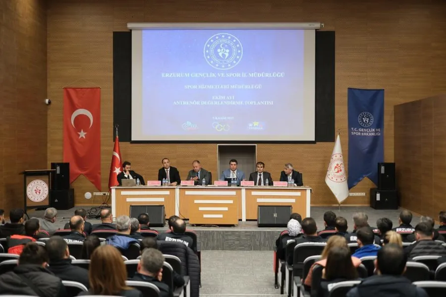 Erzurum GSİM Spor Hizmetleri Müdürlüğü tarafından organize edilen Kasım Ayın Antrenör Değerlendirme Toplantısını Kamp Eğitim Merkezi’nde yapıldı. Oldukça verimli geçen toplantıda Gençlik ve Spor Bakanlığının Kasım Ayı İl Karnesinin sonuçlarını ile ilgili konuşan Gençlik ve Spor İl Müdürü Levent Çakmur, Sporda ve gençlikte Türkiye genelinde önemli bir başarıya imza atarak Dadaşların göğsünü kabarttıklarını söyledi. Çakmur, "Sporda il karnesinde ilk sıradaki yerimizi koruduk. Gençlik alanında da Türkiye birincisi olduk. Hizmet müdürlerimize, Şube Müdürlerimize, Gençlik Merkezleri