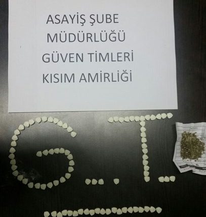 Erzurum’da güven timlerinin yaptiklari çalismada 1 kilo 313 gram esrar, 88 adet extasy hap ele geçirildi.Erzurum Emniyet Müdürlügü Asayis Subesine bagli Güven Timlerinin Mumcu Caddesi üzerinde yaptiklari uygulamada süpheli 2 kisinin üzerlerinde yapilan aramada 88 adet extasy hap ile 2 gram esrar ele geçirildi. Mahkemeye sevk edilen 2 süpheliden A.I., tutuklanarak cezaevine gönderildi. Güven Timlerinin Terminalde yaptiklari uygulamada da süpheli bir sahsin çantasinda 1 kilo 311 gram esrar ele geçirildi. Süpheli K.U., adli mercilere sevk edildi.