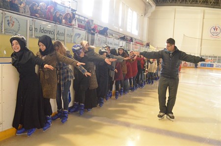 Gençlik ve Spor Bakanligi’nin yürüttügü Sehirler ve Kültüler-Yörelerimiz Projesi kapsaminda Erzurum’da üniversite egitimine yeni baslayan kiz ögrencilere yönelik ücretsiz buz pateni kursu verildi.Erzurum Gençlik Hizmetleri ve Spor Il Müdürlügü ile KYK Müdürlügü üniversite birinci sinif ögrencilerini buz pateni ile tanistirdi. Gençlik ve Spor Bakanligi’nin yürüttügü önemli projelerden biri olan Sehirler ve Kültürler-Yörelerimiz Projesi kapsaminda Erzurum’da Üniversite egitimine yeni baslayan ögrencilere yönelik ücretsiz buz pateni kursu düzenlendi. Erzurum Gençlik Hizmetleri ve Spor Il Müdürlügü ile Kredi Yurtlar Kurumu(KYK) Il Müdürlügü’nün ortaklasa organize ettigi ücretsiz buz pateni kursuna bayan ögrenciler yogun ilgi gösterdi. Erzurum GHSIM’nin otobüsleri ile KYK’da kalan ve Atatürk Üniversitesi ile ETÜ’de egitim gören Üniversite birinci sinif ögrencilerini 500 kisilik buz hokeyi salonuna tasiyor. Burada ögrencilere buz pateni egitimi veriliyor. 800 ÖGRENCI KURS GÖRECEK Erzurum Gençlik Hizmetleri ve Spor Il Müdürü Fuat Taskesenligil, 2 ay boyunca devam edecek etkinlikte, Sehirler ve Kültürler-Yörelerimiz Projesi sayesinde 800 üniversite ögrencisine ücretsiz buz pateni kursu vereceklerini söyledi. Taskesenligil, “Erzurum, kis mevsiminin en uzun yasandigi iller arasinda yer aliyor. Burada il müdürlügümüze ait buz salonlarindan üniversite ögrencilerinin faydalanmasi için böyle bir çalisma baslattik. Inaniyorum ki, ögrenciler kis mevsiminde Erzurum’dan sikayetçi olmak yerine spor yaparak zevk alacaklar. Memleketlerine gittiklerini buz pateni bilen bireyler olarak ailelerine ve arkadaslarina güzel seyler anlatacak. Erzurum GHSIM olarak ilimizin tanitimina katkida bulunmanin ve bakanligimizin projelerini basari ile yürütmenin gururunu yasiyoruz. Bize bu imkani saglayan Gençlik ve Spor Bakanimiz Akif Çagatay Kiliç, Genel Müdürümüz Mehmet Baykan ve Valimiz Seyfettin Azizoglu ile her zaman projelerimizde bizim yanimizda olan Büyüksehir Belediye Baskanimiz Mehmet Sekmen’e tesekkür ediyoruz” dedi. Bu arada Sehirler ve Kültürler-Yörelerimiz Projesine Yakutiye Gençlik Merkezi Müdürü Zülküf Yilmaz ve Palandöken Gençlik Merkezi Müdürü Memet Gözütok da destek veriyor. Yusuf Tosunoglu, Ferhat Dogus Aygün, Fatih Arslan ve Seyma Nur Kavaz da, antrenör olarak üniversite ögrencilerine buz pateni egitimi veriyor. Erzurum GHSIM Müdürü Fuat Taskesenligil ile Yakutiye Ilçe Müdürü Suat Yilmaz da, üniversite ögrencilerinin buz pateni egitimini izleyerek, ögrencilere ve antrenörlere basari dileginde bulundu.