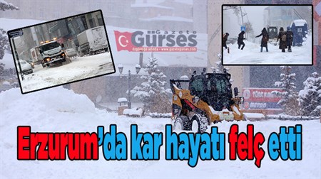 Dogu Anadolu’da etkili olan kar yagisi hayati adeta felç etti. Yaklasik 40 santimetreye ulasan kar vatandaslara zor anlar yasatti.Erzurum’da dün geceden itibaren tipi seklinde etkili olan yogun kar yagisi yerini çileye birakti. Güne yaklasik 40 santimetrelik karla uyanan vatandaslar zor anlar yasadi. Olumsuz hava nedeniyle Erzurum genelinde ilk ve ortaögretim okullari bir gün tatil edilirken, ulasimda yasanan aksamalar nedeniyle trafik durma noktasina geldi. Zincirlerini takarak yola çikan araç sürücüleri de ilerlemekte güçlük çekti. Büyüksehir Belediyesine bagli kar timleri yollarda ve kaldirimlarda biriken kar kütlelerini temizlemek için kar küreme ve tuzlama çalismalarina basladi. Meteoroloji 12. Bölge Müdürlügü, yogun kar yagisinin persembe gününe kadar devam edecegini bildirdi. Vatandaslar, yogun kar yagisi sonrasi yasanabilecek ulasimdaki aksamalar, buzlanma, don olayi ve tipi seklinde kar yagisi nedeniyle dikkatli olmalari gerektigi konusunda uyarildi.