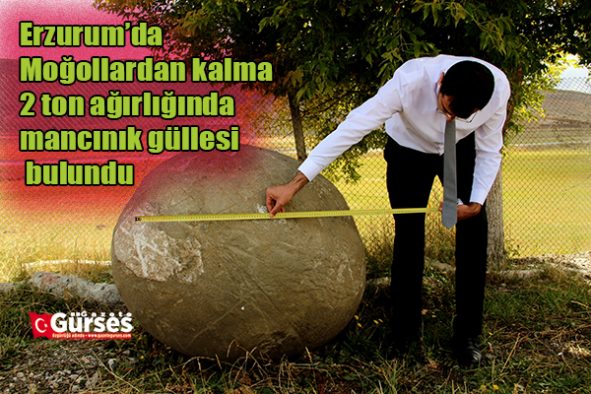 Erzurum’da Mogollardan kalma oldugu tahmin edilen 2 ton agirliginda Orta Çag’da savaslarda ve kusatmalarda, duvarlari hasara ugratmak için kullanilan mancinik güllesi bulundu.