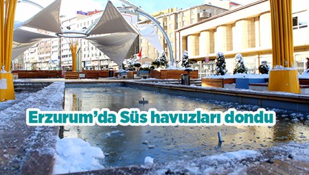 Erzurum’da dün etkili olan kar yagisinin ardindan hava sicakliginin gece eksi 5 dereceye düsmesiyle kentte süs havuzlari buz tuttu.Dogu Anadolu’da etkili olan kar yagisinin ardindan bölgede soguk hava da etkisini arttirdi. Erzurum’da dün gece en düsük hava sicakligi sifirin altinda 5 derece olarak ölçüldü. Sabah saatlerinden itibaren sogugun etkisini göstermesiyle kentteki süs havuzlari buz tuttu. Bazi çatilarda buz sarkitlari olusurken vatandaslar soguktan korunmak için atki ve eldivenlerini giydi. Ayrica buz tutan kaldirimlarda yürümekte güçlük çeken vatandaslar zaman zaman düsme tehlikesi atlatti. Büyüksehir Belediyesine bagli kar timleri de buzlari kirarak yogun mesai sarf etti. Meteoroloji 12. Bölge Müdürlügünden alinan bilgiye göre, Erzurum’da dün gece hava sicakligi eksi 5, Ardahan’da eksi 6, Kars’ta eksi 10 derece ölçüldü. Öte yandan yetkililer aksam saatlerinde olusacak buzlanmalar ve zirai don ile ilgili uyarilarda bulundu.