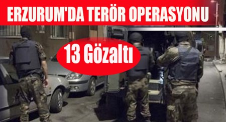 Erzurum'un Tekman ilçesinde es zamanli olarak düzenlenen terör operasyonunda 13 süpheli gözaltin alindi.Erzurum’un Tekman ilçesinde es zamanli olarak düzenlenen terör operasyonunda 13 süpheli gözaltin alindi. Edinilen bilgiye göre, Tekman ilçesinde PKK’nin köy yapilanmasina yönelik operasyon düzenlendi. Erzurum Emniyet Müdürlügü Terörle Mücadele Subesi ve Tekman Ilçe Emniyet Müdürlügü ekiplerince, ilçe merkezi ve köylerde belirlenen adreslere es zamanli operasyon gerçeklestirildi. Operasyonda, PKK’nin köy yapilanmalarina üye olduklari iddiasiyla Ahmet I., Abdulsena I., Metin Ç., Metin B., Ramazan B., Sait C., Sinan D., Abdullah Y., Ayhan K., Ali K., Umut K., Mehmet Ç., ve Baris S. gözaltina alindi. Zanlilarin adreslerinde yapilan aramalarda örgütsel dokümanlar ele geçirildi. Zanlilar, emniyetteki islemlerinin tamamlanmasinin ardindan adliyeye sevk edilecek. Öte yandan, Tekman’da önceki gözaltina alinan Nasir S. ve Cüneyt K. ise terör örgütü üyesi olmak suçundan tutuklanarak cezaevine gönderildi.