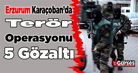 Erzurum’un Karaçoban ilçesinde yapilan terör operasyonlarinda, bölücü terör örgütü PKK'ya yardim ve yataklik yapan bes kisi yakalandi.Erzurum’un Karaçoban ilçesinde düzenlenen terör operasyonlari kapsaminda bölücü terör örgütü PKK’ya yardim ve yataktik yapan bes kisi yakalanarak gözaltina alindi. Konu ile ilgili Türk Silahli Kuvvetleri resmi sitesinden yapilan açiklamada, “Erzurum / Karaçoban’da, bölücü terör örgütüne yardim ve yataklik yaptiklari tespit edilen bes is birlikçi sahis yakalanarak gözaltina alinmistir” denildi.