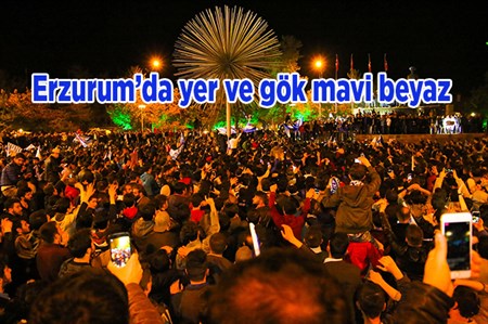 Büyüksehir Belediye Erzurumspor’un TFF 1. Lig’e yükselmesi kentte büyük bir sevince neden oldu.Havuzbasi Kent Meydani’nda Büyüksehir Belediyesi tarafindan kurulan dev ekranda final heyecanini yasayan Erzurumlular, Mavi Beyazlilarin 1-0’lik galibiyeti sonrasi sampiyonluk sevincini doyasiya yasadi. Ellerindeki bayraklarla Erzurumspor’un 1. Lig’e yükselmesini coskuyla kutlayan vatandaslar konvoy esliginde gönüllerince eglendi. Halaylar çeken Dadaslar, Mavi Beyazli takimin elde ettigi bu önemli basari sonrasi sokaga çikti. Araçlariyla Cumhuriyet Caddesi’nde konvoy olusturan taraftarlar, “Bugün günlerden Erzurumspor” diyerek sürekli tezahüratta bulundu. Palandöken Kartallarinin sehre yasattigi sevinci kentte 7’den 70’e herkes kutladi. Büyüksehir Belediye Erzurumspor ile ilgili kutlamalar Erzurum ve maçin oynandigi sehir Istanbul’da gece boyunca devam etti.