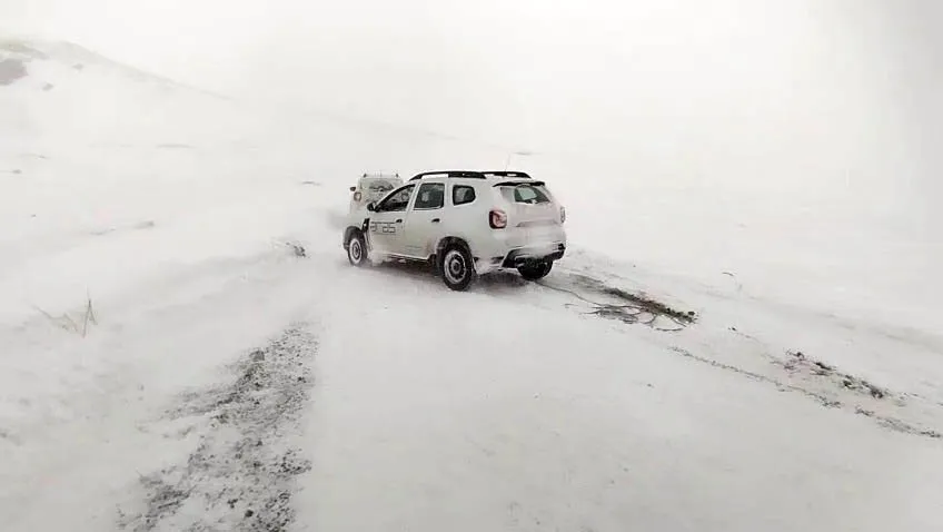Erzurum-Tekman kara yolunda tipide mahsur kalan ekipler karla mücadele ekiplerinin yardımıyla kurtarıldı.