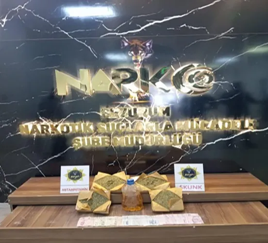 Erzurum'da düzenlenen operasyonda 7 kilo 300 gram skunk ile 2 kilo 150 gram metamfetamin ele geçirildi, 3 şüpheli tutuklandı.
