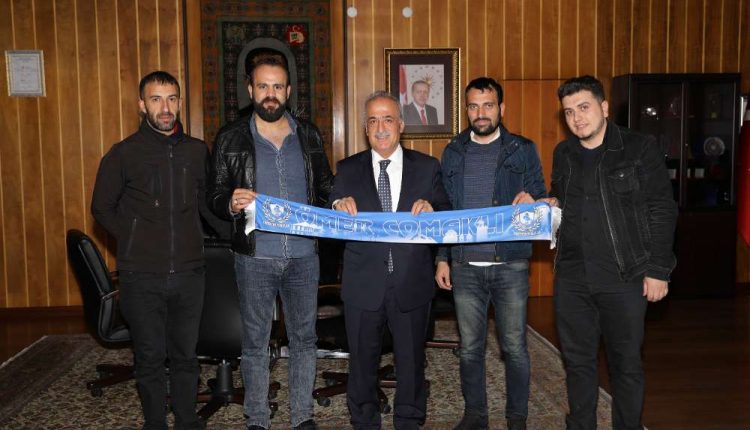 Erzurum’un futboldaki temsilcisi Büyüksehir Belediye Erzurumspor’a gönül veren taraftarlarin bir araya gelerek olusturdugu Erzurumsporlular Grubu, Atatürk Üniversitesi Rektörü Prof. Dr. Ömer Çomakli’yi ziyaret etti.