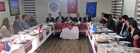Erzurum Ticaret ve Sanayi Odasi (ETSO) bünyesinde faaliyetlerini sürdüren Avrupa Birligi (AB) Bilgi Merkezi Koordinatörlügü, Erzurum’un yani sira çevre illerde de etkinliklerini sürdürüyor.ETSO AB Bilgi Merkezi’nin, Erzincan Valiligi Avrupa Birligi Dis Iliskiler Bürosu ile Dünya Çocuk Haklari Sözlesmesi Haftasi münasebetiyle ortaklasa düzenledigi etkinlikte çocuk haklarina dikkat çekildi. Erzincan’daki bir otelde gerçeklestirilen etkinlige, Vali Yardimcisi Ahmet Türköz, Milli Egitim Müdürü Aziz Gün, Belediye Kültür ve Sosyal Isler Müdürü Dursun Akbas, IMKB Müsir Zeki Pasa Ortaokulu idareci, ögretmen ve ögrenciler ile velileri katildi. Protokol konusmalarinin yapildigi programda, ögrenciler tarafindan Dünya Çocuk Haklari sözlesmesinin okunmasinin ardindan çocuk korosu tarafindan sarkilar seslendirildi. Ögrencilere tesekkür belgelerinin verildigi etkinlik toplu fotograf çekimi ile sona erdi. Kars’ta “yuvarlak masa” toplantisi ETSO AB Bilgi Merkezi’nin, Kars Ticaret ve Sanayi Odasi AB Bilgi Noktasi ile ortaklasa düzenledigi “yuvarlak masa” toplantisinda da Türkiye-AB Ekonomik Iliskileri ele alindi. AB Türkiye Delegasyonu Avrupa Takimi’ndan Can Baydarol’un konusmasi oldugu toplantida, “Türkiye-AB iliskilerinde Güncel Sorunlar” ve “Gümrük Birligi’nin Derinlestirilmesi Baglaminda Tarim Ürünlerinin Gelecegi ve Kars Üretimine Etkileri” konularinda oda üyelerine bilgi verildi.
