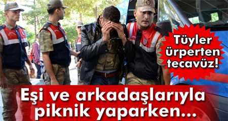 Gaziantep’te esi ile beraber piknik yapmak için gittikleri göl kenarindan kaçirilarak tecavüz edilen 43 yasindaki S.K’nin zanlilari, 4500 araç ve sahiplerinin arastirilmasi sonucu bulundu.Edinilen bilgiye göre 5 Ekim 2015 tarihinde esi M.K ve arkadaslari ile Alleben Göleti’ne piknik yapmak için gittiler. Piknik sonrasi evlerinin yolunu tutan aile, 43 yasindaki S.K’nin lavabo ihtiyaci üzerine yol kenarinda durdu. Araçtan inen S.K, ormanlik alanda inerek ihtiyacini gidermek istedi. Bu sirada kimligi belirsiz 5 kisi, kadina sarkintilik yapti. Bunun üzerine kadinin ailesi ve kimligi belirsiz sahislar arasinda kavga çikti. Esi M.K’yi etkisiz hale getiren zanlilar, S.K’yi araçlarina bindirerek, kaçirdilar. Ardindan ormanlik alana götürdükleri kadina tecavüz ettigi ileri sürülen zanlilar, kadini ormanlik alanda birakarak kaçtilar. Olayin sokunu üzerinden atmasinin ardindan yürüyerek, ana yola inen S.K, vatandaslardan yardim istedi. Bu sirada jandarmaya giderek esinin kaçirildigini belirten M.K, durumu jandarmaya bildirdi.4500 ARAÇ INCELENDI Jandarmanin yaptigi arastirma sonucu ormanlik alanda bitkin halde bulunan S.K, ifadesinde bindirildigi aracin 27 U plakali, visne çürügü renkte oldugunu hatirladigini söyledi. Bunun üzerine 4 gündür yaklasik 4500 adet visne çürügü, 27 U plakali aracin trafik kayitlari ve mobese görüntüleri inceledi. Araç sahiplerinin GBT’sini de sorgulayan jandarma ekipleri, olay yerine evi yakin olan ve olay saatlerinde olay yerinde seyir ettigi belirlenen Mesut Ç, gözaltina alinarak sorgulandi. M.K, sorgusunda 4 arkadasi ile birlikte olayi gerçeklestirdiklerini itiraf etmesi üzerine jandarma ekipleri sahislari aramaya basladi.Bu arada olayin zanlilarini arastiran S.K’nin kocasi M.K, zanlilardan Ömer Y’yi bularak darp etti. Ömer Y, ismi açiklanmayan bir hastanenin yogun bakim ünitesinde tedavi altina alinirken, jandarma diger zanlilar Halil Ç, Mehmet A, Hamza Ç’yi yakalayarak gözaltina alindi.Ömer Y’nin tedavisinin ardindan adli makamlara sevk edilecegi ögrenilirken, gözaltina alinan zanlilarin ise sorgularinin ardindan adli makamlara gönderildigi belirtildi.