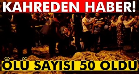 Gaziantep'teki bombali saldirida hayatini kaybedenlerin sayisi 50'ye yükseldi.Gaziantep Valiligi tarafindan yapilan yazili açiklamada, bombali saldirida hayatini kaybedenlerin sayisinin 50’ye ulastigi belirtildi. Açiklamada, “Ilimizde 20 Agustos 2016 Cumartesi günü gerçeklestirilen bombali terör saldirisinda bugün itibariyle 50 vatandasimiz hayatini kaybetmistir. Saldirida yaralanan vatandaslarimizin tedavileri ilimizdeki hastanelerimizde devam etmektedir. Düzenlenen menfur terör saldirisinda hayatini kaybeden vatandaslarimiza Allah’tan rahmet, kederli ailelerine sabir, yaralilarimiza acil sifalar diliyoruz. Haince düzenlenen saldiri ve bu saldiriyi yapanlari bir kez daha lanetle kiniyoruz” denildi.
