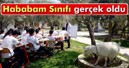 Izmir'in Kemalpasa ilçesinde, elli dönümlük bahçe üzerine kurulu özel bir egitim kurumu, ögrencilerine dogal bir ortamda ders isleme sansi tanirken, olusan görüntü Türk sinemasinin ölümsüz eserlerinden Hababam Sinifini hatirlatti.Kemalpasa ilçesindeki Özel Kemalpasa Orkunoglu Egitim Kurumlari, ögrencilerdeki sinav stresini en az indirgemek ve basarilarini artirmak için çok farkli bir uygulamayi hayata geçirdi. Bahar aylarinda ders bahçede kurulan siniflarda islenirken, ögrenciler tavuklar, ördekler, keçiler arasinda dogayla iç içe ders islemeye basladi. Ders sonrasinda ise ögrencilerin her biri bir agaç gölgesine geçerek ders çalisiyor. YGS ve TEOG sinav stresinin en aza indirilmesi amaciyla hazirlanan özel programda, ögretmenlerin tiyatral ders anlatimi ögrencilerin derslerini daha ilgiyle izlemesini sagliyor.ORTAM HABABAM SINIFINI ANIMSATIYOR Ögrenciler dogayla iç içe yaptigi bu derslerde olusan görüntülerde Türk sinema tarihinin ölümsüz eserlerinden Hababam Sinifini animsatti. Bazi velilerde zaman zaman okulu ziyaret ederek ögrencilere eslik ediyor. Kimi zamanda ögretmenlerin renkli ders anlatisi ve mücadelesi de derslere ayri bir renk katiyor. Tarih dersinde kazan kaldiran yeniçerilerin isyani, zeytin agacina kaçan topu almak isteyen beden egitimi ögretmeninin zorlu mücadelesi herkesi güldürdü.“KENDI INEGIMIZDEN SÜTÜMÜZÜ SAGIYORUZ, YOGURT YAPIYORUZ” Özel Orkunoglu Egitim Kurumlarinin Kurucusu Ataner Orkunoglu, ilkokulu bir köy okulunda okudugunu belirterek, “Bu yüzden böyle bir okul açmak istedim. Çocuklar mutlu olsun dogayla iç içe olsun organik beslensin, organik yasasinlar her böcegi her çiçegi ögrensinler diye. Onlarin mutlulugu için elimizden geleni yapiyoruz. Hava güzel oldugu zaman dersleri genelde disarida yapiyoruz. Tüm bitkileri ekmeyi, büyütmeyi toplamayi ögretiyoruz. Hayvanlarla dost olmayi ögreniyorlar. Okulu seviyorlar. Cumartesi dahi okula gelmek için erkenden kalkip ‘beni okula götür’ diyen çocuklarimiz var. Zeytinden yag çikarip okulda çikan yemeklerde kullaniyoruz. Çocuklarimiz köy yumurtasi yiyor. Bildircin yumurtalarini evlerine götürüyor. Ikindi vakti meyve saatinde çocugumuzu agaca götürüp agaçtan kopartip yediriyoruz. Kendi inegimizden, sütümüzü sagiyoruz, yogurt yapiyoruz peynir yapiyoruz. Disaridan bir tek et aliyoruz” diye konustu.Anadolu Lisesi Türk Dili ve Edebiyati Zümre Baskani Gürcan Baran ise söyle konustu: “Egitim sistemimiz sinava dayali çocuklarin stres yapmasi kaygi yapmasi hep üst düzey noktalarda. Dolayisiyla günümüz sisteminin, Milli Egitim Bakanliginin bize söyledigi yapilandirmaci egitim yaklasimiyla yaparak yasayarak doga içinde ögrenim bu kurumda ögrencilerimiz severek isteyerek arzu ederek geliyor. TEOG ve YGS sinavlari öncesi ögrencilerimiz stresten uzak test çözüyor. Çocuklarin daha mutlu daha motive daha pozitif yetismesine katki sagliyoruz.”