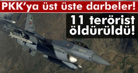 Genelkurmay Baskanligi, Hakkari'de 11 teröristin etkisiz hale getirildigini açikladi.Genelkurmay Baskanligindan yapilan açiklamada, Hakkari’nin Yüksekova ilçesinde tespit edilen bölücü terör örgütü mensubu teröristlere ait çok sayida barinak, magara ve silah mevzileri düzenlenen hava harekati ile imha edildigi belirtilerek 11 teröristin etkisiz hale getirildigi kaydedildi. Bölgede yapilan aramada, bir bölücü terör örgütü mensubu teröristin cesedinin araziye gizlenmis olarak bulundugu vurgulanarak, bölücü terör örgütü tarafindan kullanilan 4 adet magarada; 1 adet Doçka uçaksavar makineli tüfegi,8 adet Kalesnikof piyade tüfegi, 1 adet Bixi makineli tüfegi, 1 adet Kannas keskin nisanci tüfegi, 1 adet RPG-7 roketatar, 4 adet RPG-7 roketi, 10 adet el bombasi, 1 adet telsiz, 1 adet radyo, ele geçirilen silahlara ait çok sayida mühimmat, yiyecek, yasam malzemesi ve muhtelif örgütsel doküman ele geçirildigi bildirildi.3 TERÖRISTIN CESEDI BULUNDU Tunceli’de devam eden operasyonda, bölücü terör örgütü tarafindan kullanilan bir adet siginakta 3 bölücü terör örgütü mensubu terörist cesedinin bulundugu, çok sayida yasam malzemesi ve muhtelif örgütsel doküman ele geçirildigi belirtildi.MÜHIMMAT ELE GEÇIRILDI Diyarbakir’in Lice ilçesinde devam eden operasyonda, 1 adet Kalesnikof piyade tüfegi, 4 adet dolu Kalesnikof piyade tüfegi sarjörü, 3 adet tabanca, 2 adet dolu tabanca sarjörü, 1 adet av tüfegi, 200 kilogram esrar ve 600 bin kök hint keneviri, 400 kilogram amonyum nitrat, 15 adet el yapimi patlayici düzenegi, 4 bin adet torpil, ele geçirilen silahlara ait çok sayida mühimmat, patlayici madde yapiminda kullanilan malzeme, yiyecek, yasam malzemesi ve muhtelif örgütsel doküman ele geçirildigi ifade edildi. Toplam 8 süpheli sahsin gözaltina alindigi vurgulanarak ayrica operasyon bölgesinde 3 adet el yapimi patlayicinin tespit edilerek yerinde imha edildigi bildirildi.145 KILO PATLAYICI ELE GEÇIRILDI Van’in Baskale ilçesinde devam eden operasyonda 45 kilogram patlayici madde, patlayici madde yapiminda kullanilan malzeme, yiyecek ve muhtelif örgütsel doküman ele geçirildigi açiklandi. Van’in Baskale ilçesi, Yolmaçayir Mahallesi’nde bir evde yapilan aramada 100 kilogram patlayici madde, 300 metre kablo, 2 adet fünye ele geçirildigi kaydedildi. Mus’un Bulanik ilçesinde devam eden operasyonda 2 adet el yapimi patlayicinin (ikiser büyük tüp) bulunarak imha edildigi belirtildi.5 TERÖRIST TESLIM OLDU Bölücü terör örgütünden kaçan, Sanliurfa Ceylanpinar’da 4 teröristin, Hilvan’da 1 terörist olmak üzere toplam 5 teröristin güvenlik güçlerine teslim oldugu bildirildi.