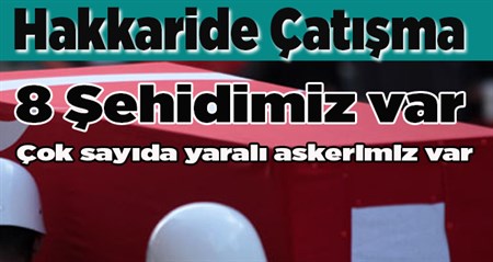 Genelkurmay Baskanligi, Hakkari'de Çukurca Çigli Üs Bölgesi'nde teröristlerle çikan çatismada 6 askerin ve helikopter kazasinda da 2 askerin sehit oldugunu açikladi.Genelkurmay Baskanligi’ndan yapilan açiklamada, “13 Mayis 2016 Cuma günü saat 04.50 sularinda Hakkâri Çukurca Çigli Üs Bölgesi’nde teröristlerle çikan silahli çatisma esnasinda alti kahraman silah arkadasimiz sehit olmus, sekiz kahraman silah arkadasimiz ise yaralanmistir. Teröristlere müdahale için bölgeye sevk edilen bir Kobra helikopterimiz ise Hakkâri Çukurca bölgesinde saat 05.50 sularinda kaza kirima ugramistir. Teknik bir arizadan kaynaklandigi degerlendirilen bu elim kazada helikopter pilotu olan iki kahraman silah arkadasimiz sehit olmustur. Kaza ile ilgili inceleme ve arastirma devam etmektedir” denildi.Açiklama söyle devam etti: “Teröristlerin etkisiz hale getirilmesi maksadiyla bölgeye F-16 uçagi, taarruz helikopter kolu, insansiz hava araci ve takviye birlikler sevk edilmis, su ana kadar alti bölücü terör örgütü mensubu terörist etkisiz hale getirilmis olup, operasyonlara devam edilmektedir. Bizleri derin bir aci ve üzüntüye bogan bu olayda hayatini kaybeden aziz sehitlerimize Allah’tan rahmet, sehitlerimizin degerli ailelerine, yakinlarina, Türk Silahli Kuvvetleri ile yüce Türk milletine bassagligi ve sabir, yaralanan kahraman silah arkadaslarimiza acil sifalar diliyoruz.”