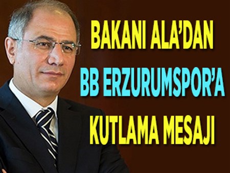 Içisleri Bakani Efkan Ala, BB Erzurumspor’un Spor Toto 3. Lig'de sampiyonlugunu ilan etmesinin ardindan kutlama mesaji yayimladi.Bakan Ala, Erzurum Büysüksehir Belediye Baskani Mehmet Sekmen ve BB Erzurumspor Baskani Ali Demirhan’a gönderdigi mesaj ile BB Erzurumspor’u kutladi. Bakan Ala Büyüksehir Belediye Baskani Mehmet Sekmen ve BB Erzurumspor Baskani Ali Demirhan’a gönderdigi mesajda su ifadelere yer verdi: “Spor Toto 3. Lig’de sampiyonlugu garanti ederek 2. lige yükselen Büyüksehir Belediye Erzurumspor’u tebrik ediyorum. Bu büyük basariya imza atan degerli futbolculari, teknik ve idari kadroyu, sezon boyunca desteklerini esirgemeyen taraftarlari kutluyor ve tüm Erzurumlu hemserilerimize hayirli olmasini diliyorum.”