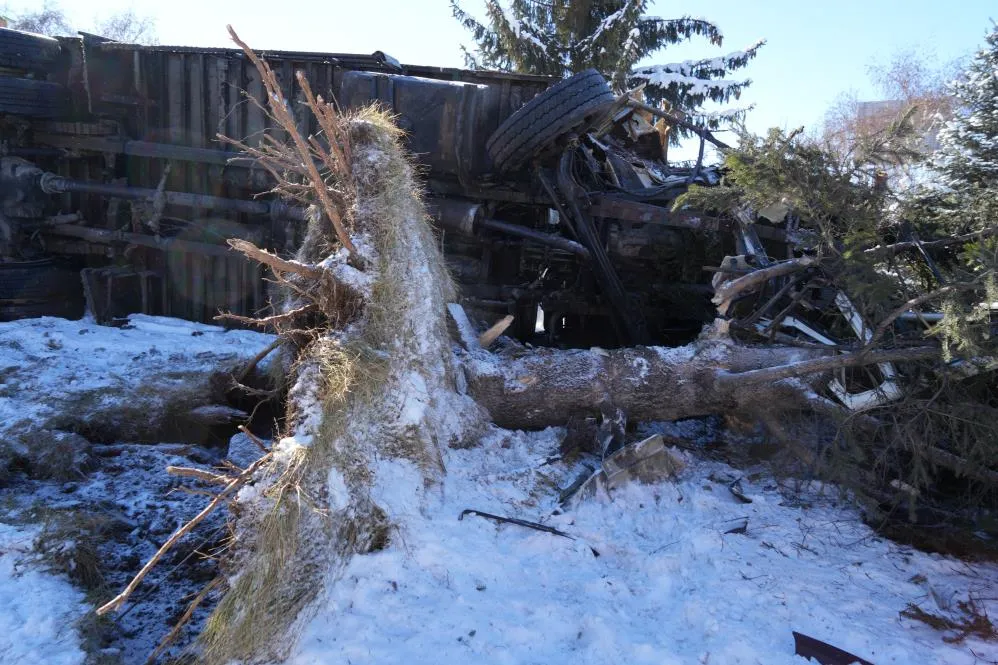 Işıklarda duramayan kamyon devrildi, çarptığı ağacı kökünden söktü