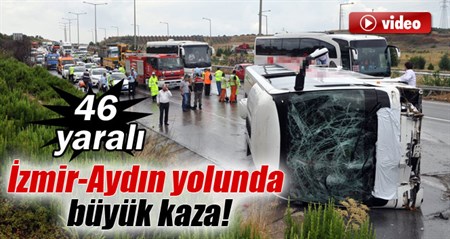 Izmir-Aydin otobaninda, iddiaya göre sehirler arasi otobüs önündeki otobüsü geçmek isterken çarpti. Kazada 2'si agir 46 yolcu yaralandi.