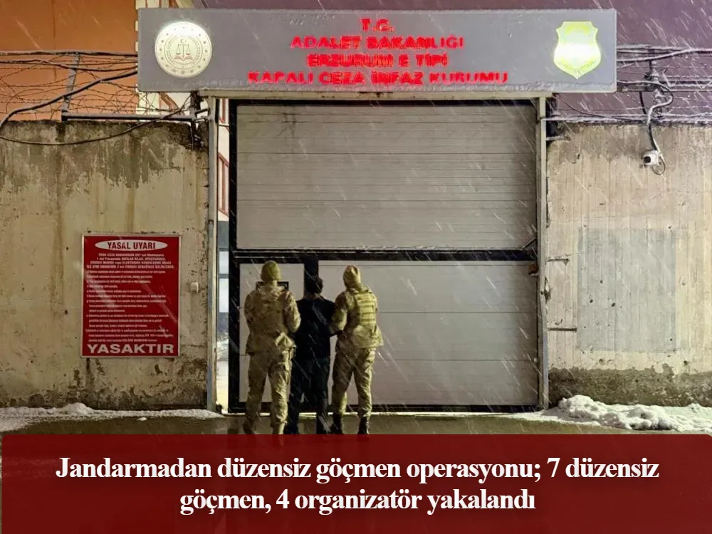 Erzurum İl Jandarma Komutanlığı Kaçakçılık ve Organize Suçlarla Mücadele (KOM) Şube Müdürlüğü ile Karayazı İlçe Jandarma Komutanlığı, Karayazı Cumhuriyet Başsavcılığı koordinasyonunda yürütülen çalışmalar neticesinde, "Göçmen Kaçakçılığı" suçunu örgütlü olarak işleyen 2 şüpheli organizatör ile birlikte 7 düzensiz göçmen yakalandı.