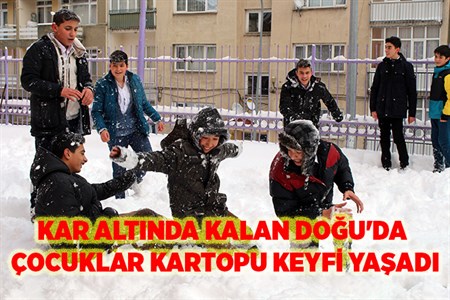 Kar ve tipi nedeniyle 2 bin 120 köy yolunun ulasima kapandigi Dogu Anadolu Bölgesi'nde, karin tadini her zamanki gibi kartopu oynayan çocuklar çikardi.Bölgeyi etkisi altina alan kar yagisi nedeniyle Kars, Bayburt, Agri’da il genelinde, Erzincan, Mus, Ardahan ve Tunceli’nin bazi ilçelerinde egitime 1 gün ara verildi. Egitim-ögretimin bugün basladigi Erzurum’da ise çocuklar kartopu keyfi yasadi. Ders arasini firsat bilen çocuklar teneffüste kartopu oynayarak karin tadini çikardi. Kar ve tipinin etkili oldugu Erzurum’un Oltu, Senkaya ve Pasinler ilçelerinde ise hastalar, Erzurum Büyüksehir Belediyesi Kirsal Kalkinma Hizmetleri ekipleri tarafindan kar üstü araçlariyla kurtarilarak hastanelere kavusturuldu. Karaçoban ilçesi Kusluca mahallesi yolunda mahsur kalan vatandaslarin imdadina ise yine karla mücadele ekipleri yetisti. Donma tehlikesi geçiren 20’ye yakin vatandas kurtarilarak köylerine ulastirildi.DOGU’DA 2 BIN 120 KÖY YOLU KARDAN KAPANDI Dogu Anadolu’da yogun kar yagisi nedeniyle 2 bin 120 köy yolunun merkezlerle ulasim baglantisi kesildi. Alinan bilgiye göre, Erzurum’da 962, Erzincan’da 322, Agri’da 225, Kars’ta 224, Mus’ta 205 ve Igdir’da 182 olmak üzere toplam 2 bin 120 yerlesim biriminin merkezlerle olan baglantisi koptu. Mus’ta kar kalinligi 85 santime ulasirken, Agri’da 80, Erzurum’da 48, Kars’ta 37, Ardahan’da 25, Erzincan’da 8 santim olarak ölçüldü. Kayak Merkezlerindeki kar kalinliklari ise Palandöken’de 156, Konakli’da 150, Sarikamis’ta 120, Ergan’da 97 santimi buldu. Meteoroloji 12’nci Bölge Müdürlügü yetkilileri, Cuma gününe kadar kar yagisinin beklenmedigini bildirdi.
