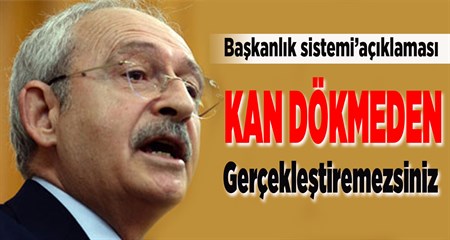CHP Genel Baskani Kemal Kiliçdaroglu, “Nasil bir baskanlik sistemi, bir kisi konusacak Türkiye susacak, hakim ona göre karar verecek, ona göre milletvekili listeleri hazirlanacak. Böyle bir baskanlik sistemini kan dökmeden bu ülkede gerçeklestiremezsiniz” dedi.CHP Genel Baskani Kemal Kiliçdaroglu, TOBB Genel Kurulu’nda yaptigi konusmada is dünyasinin yasadigi sorunlarin çok daha açik dile getirilmesini istedigini belirterek, genel kurullarda Türkiye’nin ekonomi ve siyasetinin masaya yatirildigini ifade etti. Is dünyasinin ve Türkiye’nin içinde bulundugu sorunlari ana basliklar halinde sunmaya çalisacagini anlatan Kiliçdaroglu, Türkiye’nin tarihin en derin krizlerinden birinin yasandigi ve Genel Kurul’a Türkiye Cumhuriyeti Basbakaninin katilamadigini savundu. Son iki seçimde Basbakan Ahmet Davutoglu’nun basari elde ettigini söyleyen Kiliçdaroglu, “Geldi basbakanlik koltuguna oturdu, yasalara, anayasaya göre. Bir sabah kendisini saraya çagirdilar, görevi birakacaksin. Neye göre birakacaksin? 23 milyon 600 bin oy almis siyasi partinin genel baskanina bir kisi diyor ki ‘Görevi birakacaksin’. Demokrasi bu mu? Bu oylari çöpe atmaya kimin hakki ve yetkisi var?” diye konustu. Kiliçdaroglu, Türkiye’nin 5 temel sorun alani oldugunu belirterek, “Bir ekonomi, iki demokrasi, üç dis politika, dört egitim, bes toplumsal baris” dedi.Yeni anayasa çalismalarina iliskin degerlendirmede bulunan Kiliçdaroglu, Hisarciklioglu’nun konusmasinda ‘Yeni anayasa yapilacaksa bizim can ve mal güvenligimiz, güvence altina alinmalidir’ dedigini hatirlatti. Kiliçdaroglu, “Can ve mal güvenliginizin olmadigini siz de biliyorsunuz. Peki ben size su soruyu soruyorum, ‘yargi ve yasama benim için ayak bagidir’ dendigi zaman içinizden bir yürekli insan çikip neden itiraz etmedi? Siz madem demokrasiyi savunuyordunuz neden itiraz etmediniz? Yargitay Baskanimiz açikladi, ‘Yargiya güven yüzde 30’lara düstü’ diye. Bir ülkede adalet yoksa o ülkede devlet, güven yoktur. Bir ülkede adalet mülkün temelidir. Insani gelismislik endeksinde 2015’te 3 sira geriledik. 69’uncu siradan 72’nci siraya geriledik” seklinde konustu.Baskanlik sistemi tartismalarina isaret eden Kiliçdaroglu, “Bu anayasa diyor ki yargi bagimsizdir. Hiçbir organ yargiya emir ve talimat veremez diyor. Anayasa darbe hukuku ile beraber ele alinacaksa degistirelim. Nasil bir baskanlik sistemi, bir kisi konusacak Türkiye susacak, hakim ona göre karar verecek, ona göre milletvekili listeleri hazirlanacak. Böyle bir baskanlik sistemini kan dökmeden bu ülkede gerçeklestiremezsiniz. Tepeden tirnaga yeniden yazacagiz, ilk 4 maddesi bizim için dokunulmaz dedik” ifadelerini kullandi.Kemal Kiliçdaroglu, TBMM Baskani Ismail Kahraman’in laiklikle ilgili sözlerini de hatirlatarak, “TBMM’nin Baskani kalkacak ‘Laiklik anayasadan çikarilmalidir’ diyecek. Kusura bakmayin ama TÜSIAD kadar yürekli olamayacaksiniz, bunu kabul edemiyorum” seklinde konustu.