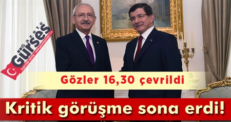 Basbakan Ahmet Davutoglu, koalisyon görüsmeleri kapsaminda CHP Genel Baskani Kemal Kiliçdaroglu ile 3. kez biraraya gelmisti. Görüsme sona erdiBasbakan Ahmet Davutoglu, koalisyon görüsmeleri kapsaminda CHP Genel Baskani Kemal Kiliçdaroglu ile 3. kez biraraya geldi. Görüsme sona erdi. Basbakan Davutoglu ve Kemal Kiliçdaroglu’nun görüsmesi 1.5 saat sürdü. Görüsmenin ardindan Basbakan Davutoglu’nun saat 16.30’da açiklama yapmasi bekleniyor.
