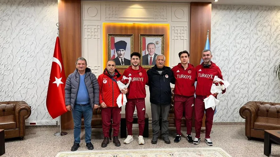 Milli sporcu Furkan Akar çiçeklerle karşılandı