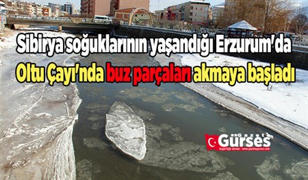 Sibirya soguklarinin yasandigi Erzurum'da Oltu Çayi'nda buz parçalari akmaya basladi.Son yillarin en soguk kis günlerini yasayan Erzurum’da Oltu ilçe merkezinden geçen Oltu Çayi adeta buz akiyor. Ilçede yasayan Türkyilmaz Pala, “Güzel ilçemizin süsleyicisi olan Oltu Çayi ilk defa son yillarin en büyük kisini yasiyor. Dolayisiyla da iklim sert, hava soguk bir tabiat olayi olarak da çayimizda buz akmaya basladi. Temiz ve berrak sekilde yazin hiç görmedigimiz sekilde akiyor. Bu da görülmeye deger” dedi. Oltulu vatandaslar son yillarin en soguk kisini yasadiklarini belirtti.