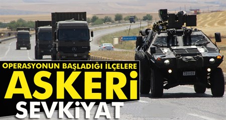 Diyarbakir’da 5 ilçenin kirsalinda baslatilan operasyona destek amaciyla kent merkezinden çok sayida askeri araç sevk edildi.Sabah saat 05.00’te sokaga çikma yasagi ilan edilen Lice, Hani, Hazro, Kulp ve Silvan’in 25 köyünde terör örgütü PKK mensuplarina yönelik baslatilan operasyona destek için askeri sevkiyat sürüyor. Yasagin ilan edildigi bölgelerde, ilçelerde ve köylerde 5 kilometre arayla asker ve polis tarafindan arama noktalari kuruldu. Araçlarla bölgeden geçenler ise asker ve polis tarafindan didik didik arandi. Bölgede operasyonlar hiz kesmeden sürerken, süpheli sahislara ise Genel Bilgi Taramasi (GBT) yapiliyor.GAZETECILER ALINMIYORÖte yandan, ögle saatlerinde 7. Kolordu Komutanligi’ndan çok sayida askeri araç zirhli araçlar esliginde operasyon bölgesine hareket etti. Kirsalda süren büyük terör operasyonunu yapildigi bölgeye ise gazeteciler alinmiyor. Diyarbakir’in 5 ilçesine bagli 25 köy kirsalinda baslatilan büyük terör operasyonu genis kapsamli olarak devam ediyor.