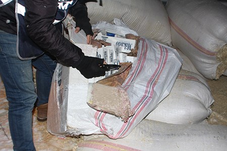 Erzurum Emniyet Müdürlügü Kaçakçilik ve Organize Suçlarla Mücadele Sube Müdürlügü ekiplerince gerçeklestirilen operasyonda saman yüklü TIR’da yapilan aramada 141 bin 650 paket kaçak sigara ele geçirildi.Edinilen bilgiye göre, KOM Sube Müdürlügü ekiplerince kaçak sigara sevkiyati yapan sahislara yönelik yapilan çalismalar kapsaminda yapilan operasyonlarda ev esyasi yüklü bir kamyon ile saman yüklü bir TIR’da yapilan aramalarda toplam 141 bin 650 paket kaçak sigara ele geçirilerek süpheliler M.S ve T.G isimli sahislar hakkinda adli islem baslatildi. Emniyet Müdürlügü’nce yapilan açiklamada, haksiz kazanç elde eden sahislarin ve kaçakçilik faaliyetlerinin önlenmesine yönelik çalismalarin kararlilikla devam edecegi belirtildi.